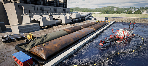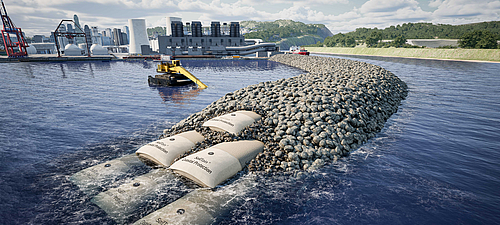 Die geotextile Betonmatte dichtet ab und schützt vor Erosion sowie mechanischer Beschädigung.