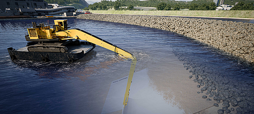 Die Schadstoffbarriere kann gleichmäßig und erosionssicher auf und in Böden und unter Wasser errichtet werden.
