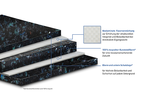 Basetrac Plate | Lastverteilung, Bodenschutz | Neolaminate-Kern, 100 % recycelt, 23 mm dick | Kabeltrassen, Windparks, Lagerflächen |