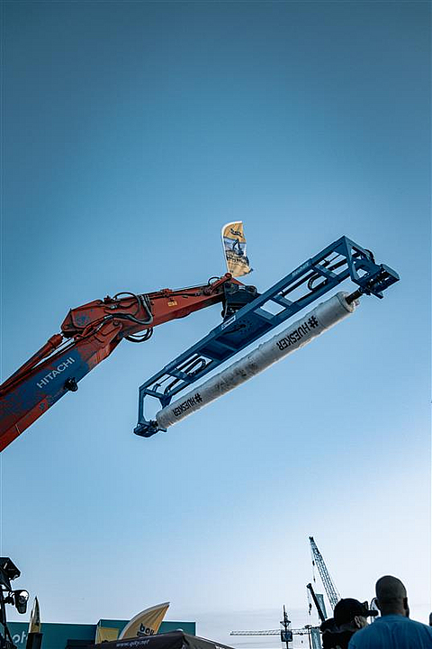 Der Rückbau erfolgte mithilfe eines speziell entwickelten Anbaugeräts der Firma Tibatek®, das sich im Praxistest bewährte. Selbst zugschwächere Materialien konnten nahezu zerstörungsfrei ausgebaut werden. Auch das Aufrollen vollgesogener Bentonitbahnen mit einem Trockengewicht von rund 1.000 kg war ohne Schwierigkeiten möglich.