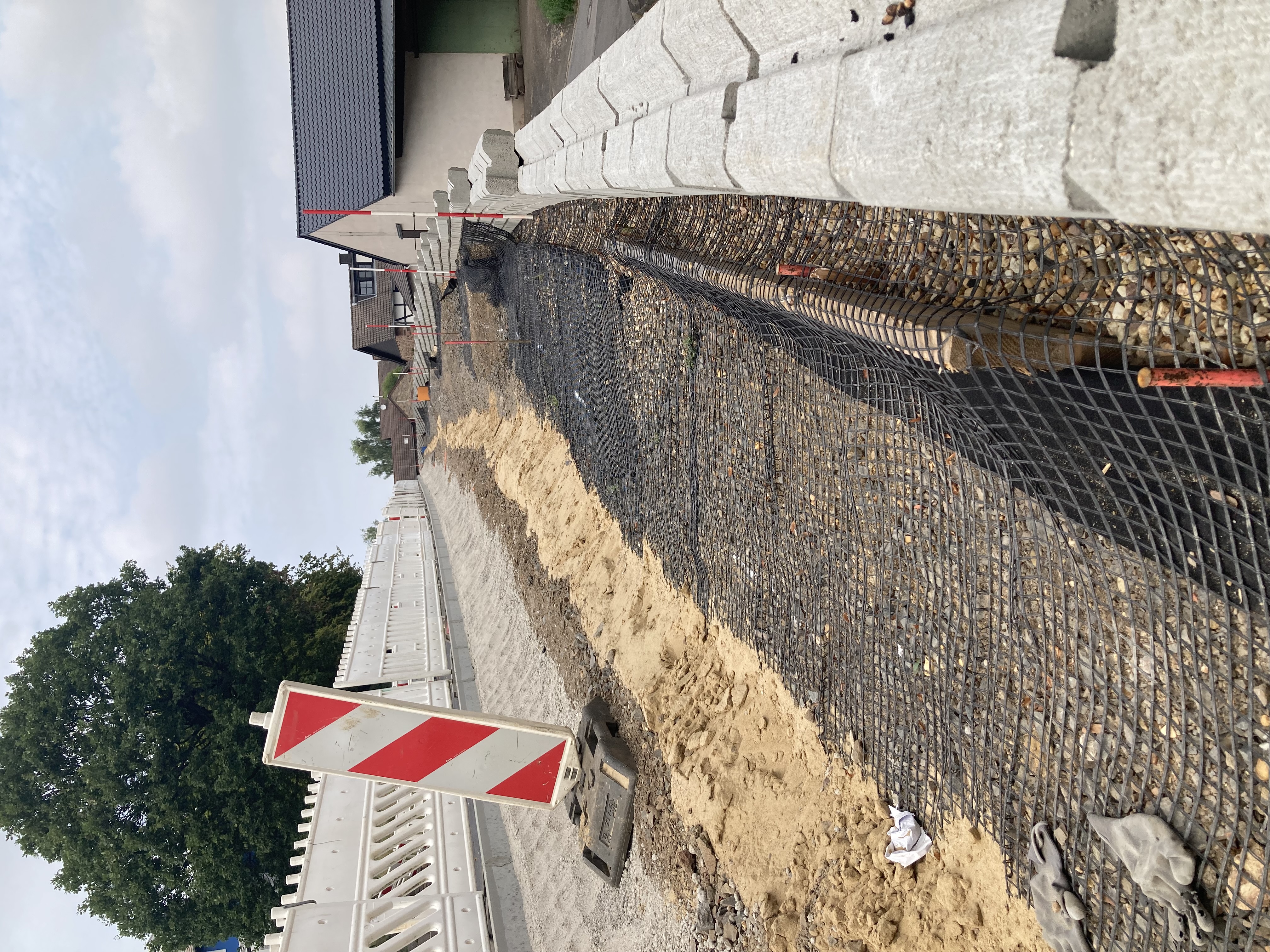 Unterhalb der Rather Straße (K32) im Nideggener Stadtteil Rath befand sich ursprünglich eine Stützmauer aus den 1970er-Jahren. Im Rahmen einer turnusmäßigen Bauwerksprüfung stellte der Kreis Düren (NRW) fest, dass deren Standsicherheit aufgrund erheblicher Schäden nicht mehr gewährleistet war. In der Folge kam es zu einer halbseitigen Straßensperrung sowie temporären Sicherungsmaßnahmen mit Betonblöcken. Eine Sanierung des Bestands kam nicht infrage, sodass ein vollständiger Neubau notwendig wurde. Ziel der Maßnahme war eine dauerhaft standsichere Lösung, die sich in das bestehende Umfeld einfügt und zugleich wirtschaftliche sowie ökologische Vorteile gegenüber konventionellen Massivbauweisen bietet.
